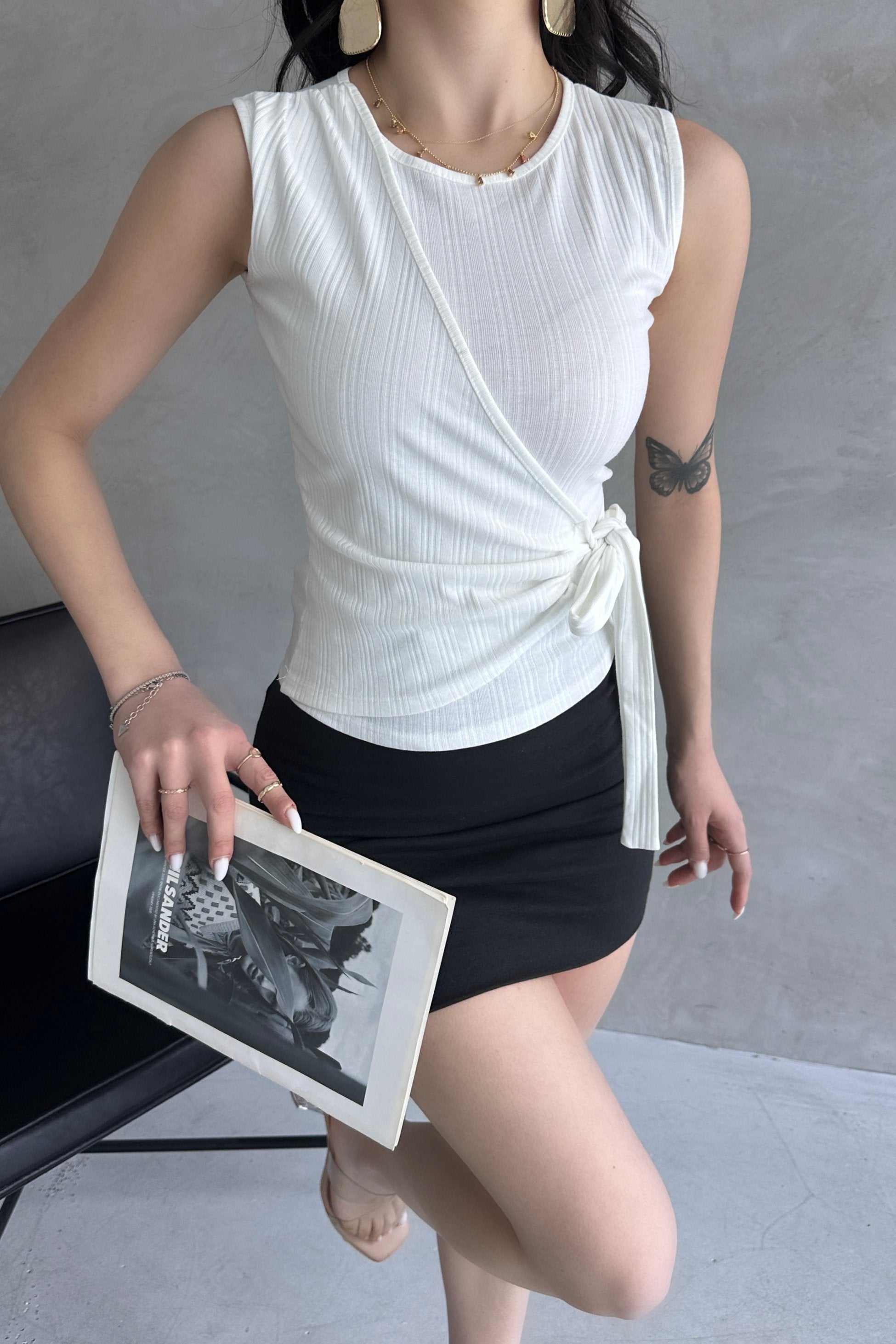 Askılı Önü Kruvaze Bağlamalı Bluz -