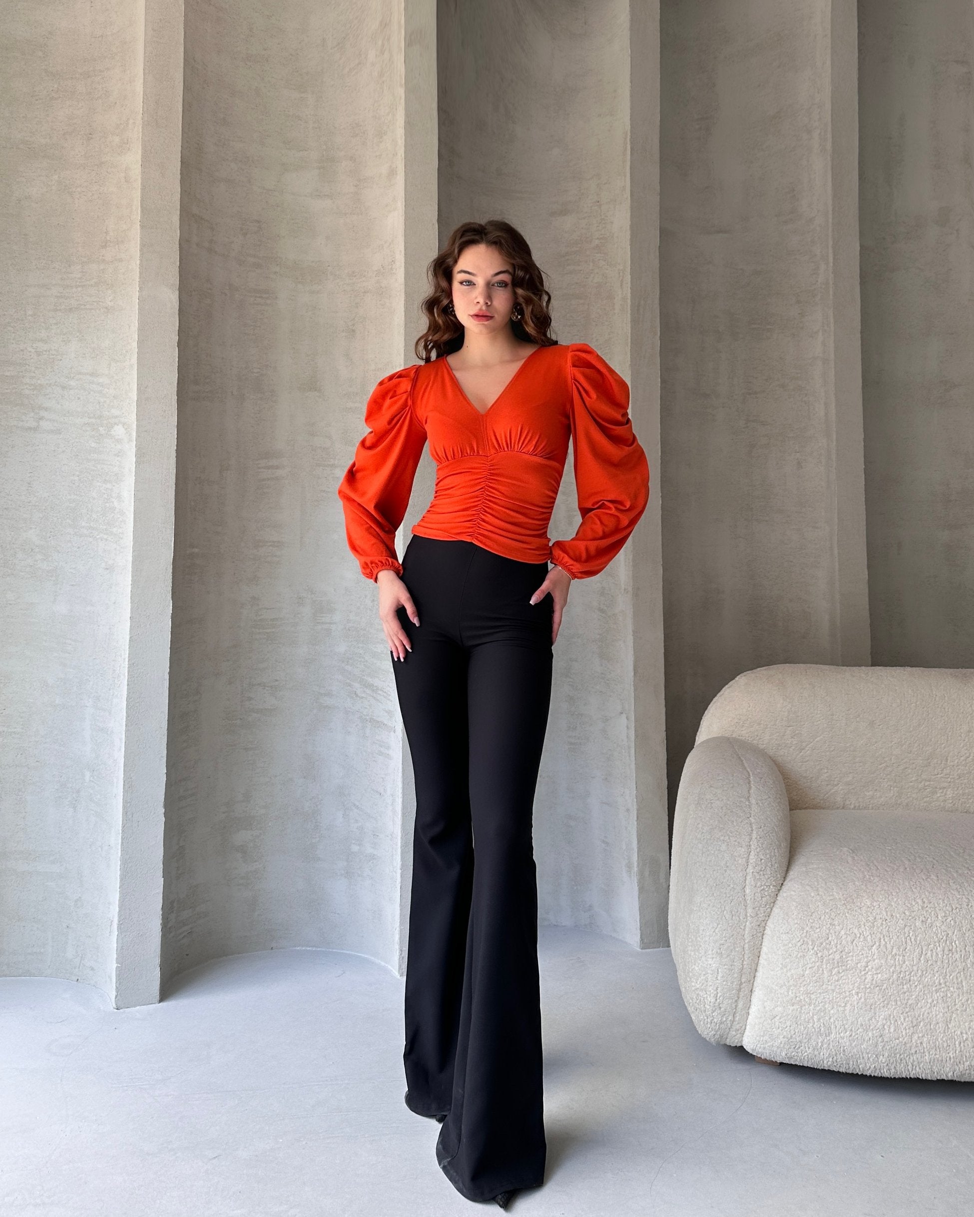 Öpücük Yaka Prenses Kol Crep Bluz -