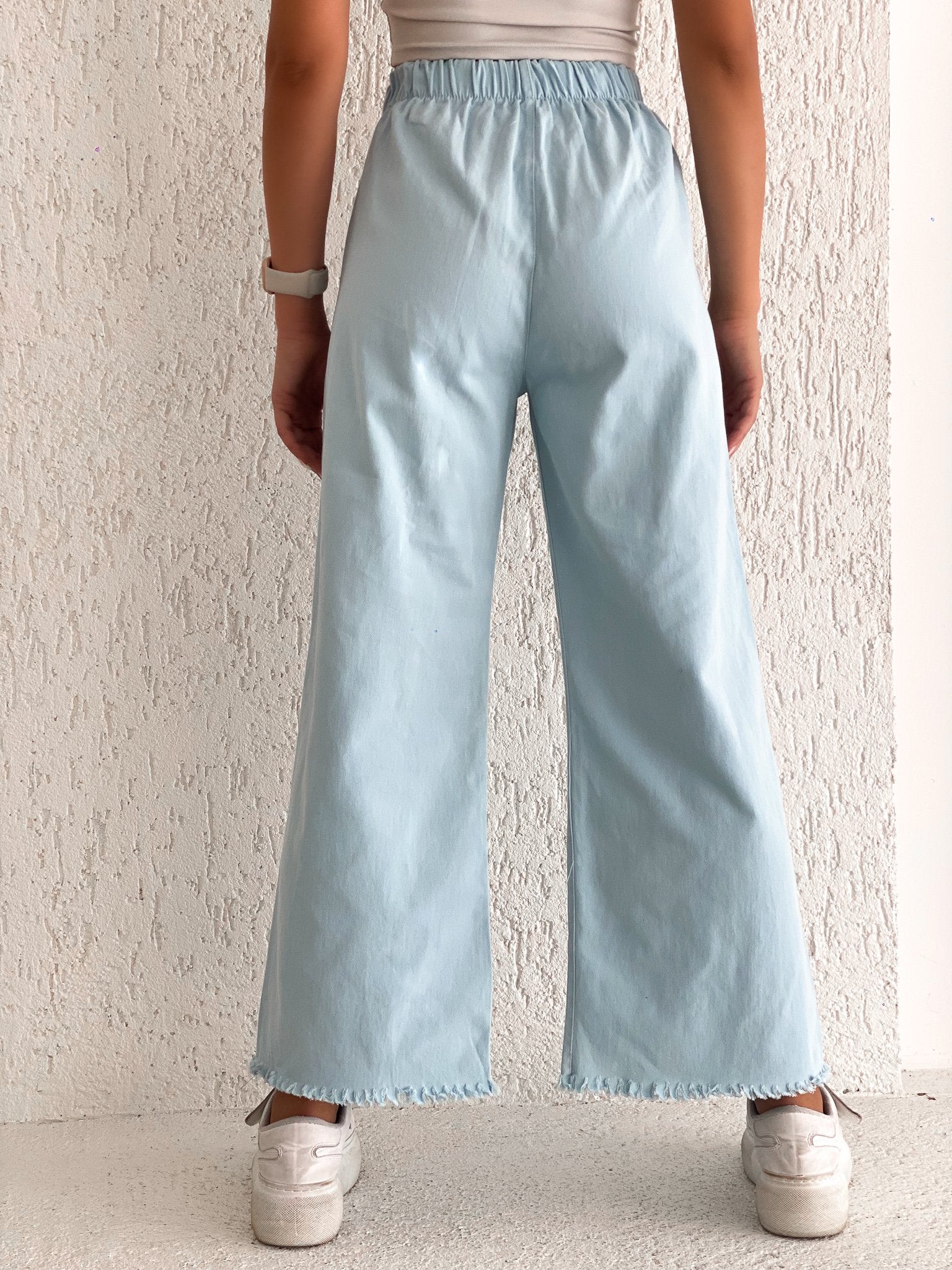 Viskon Kumaş Yaprak Desenli Pantolon-Mavi Viskon Kumaş Yaprak Desenli Pantolon-Mavi