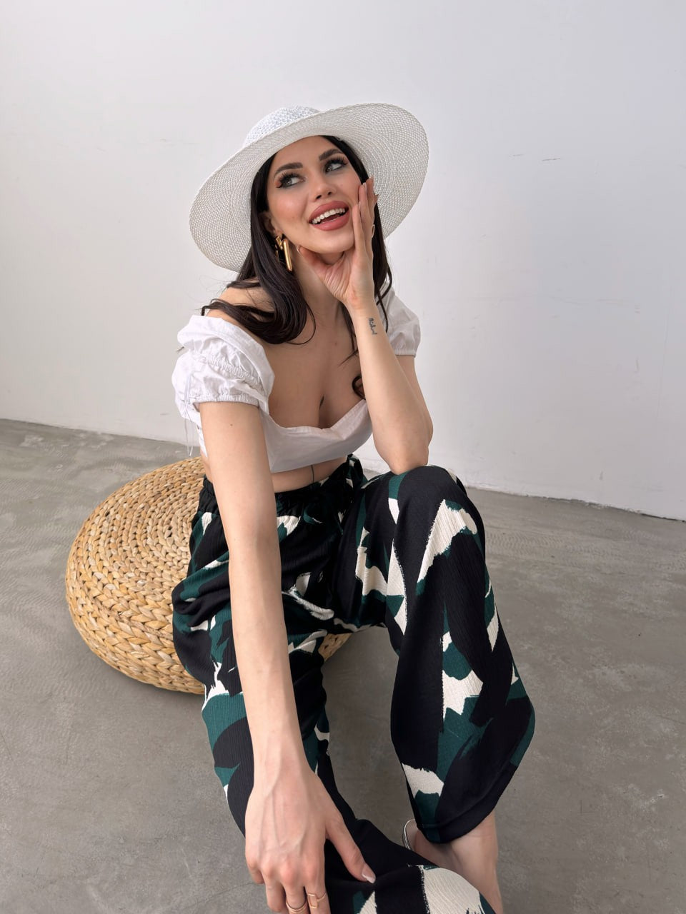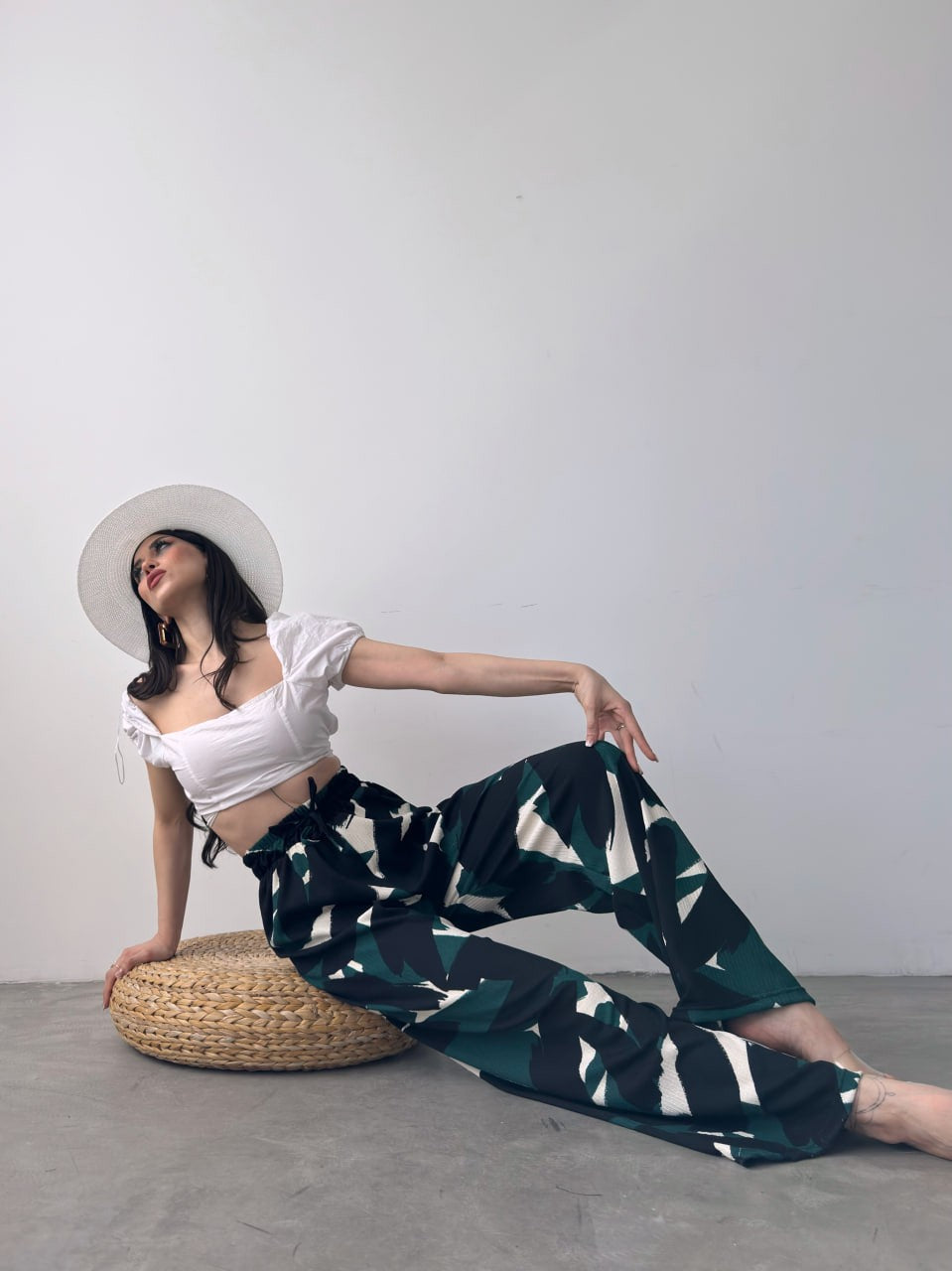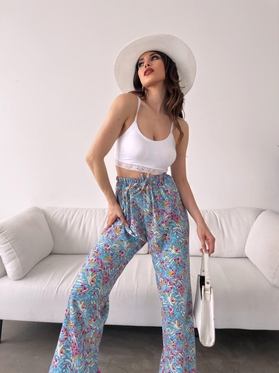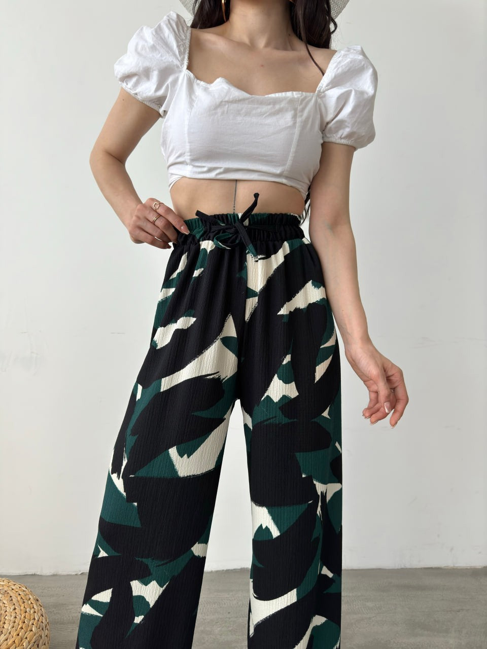 Desenli Beli Lastikli Bürümcük Pantolon -