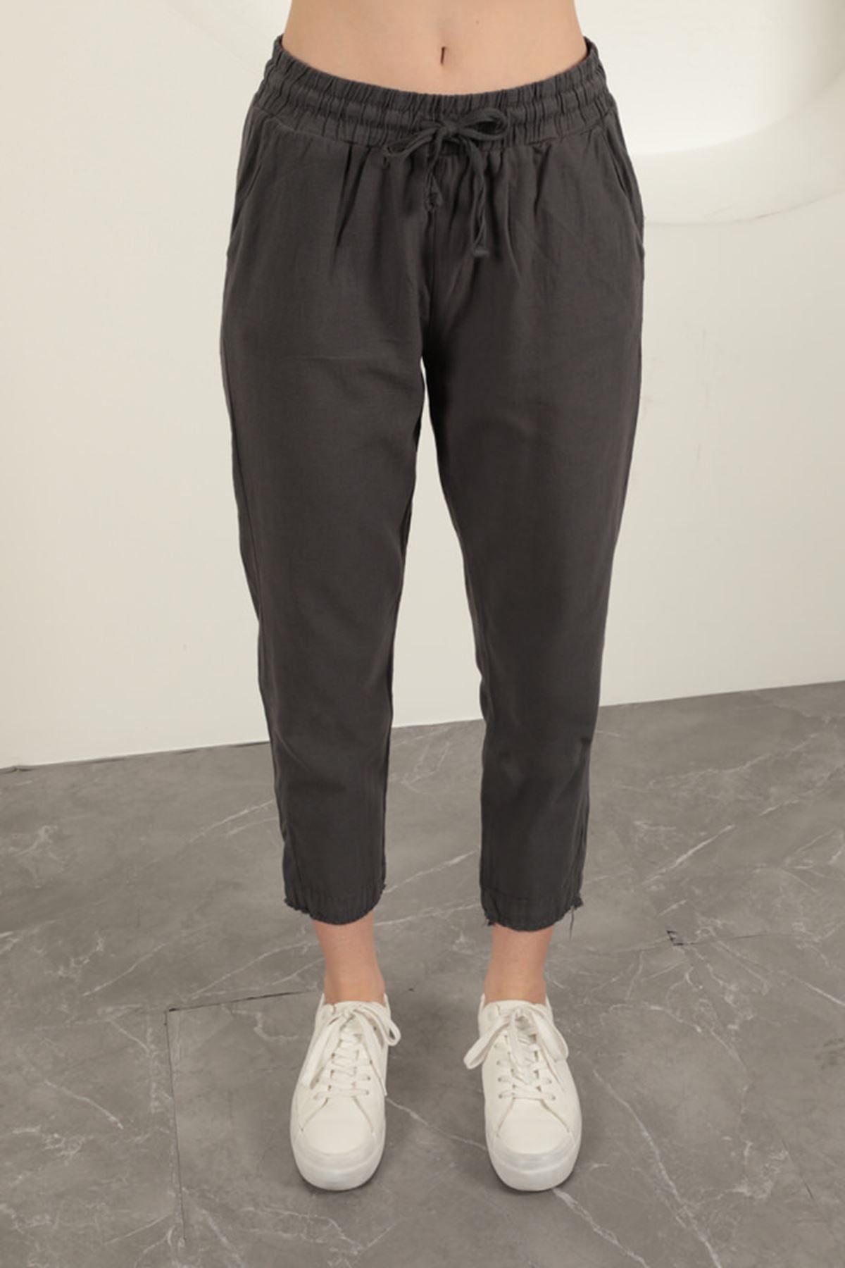Keten Kumaş Püsküllü Paça Kadın Pantolon-Antrasit Keten Kumaş Püsküllü Paça Kadın Pantolon-Antrasit