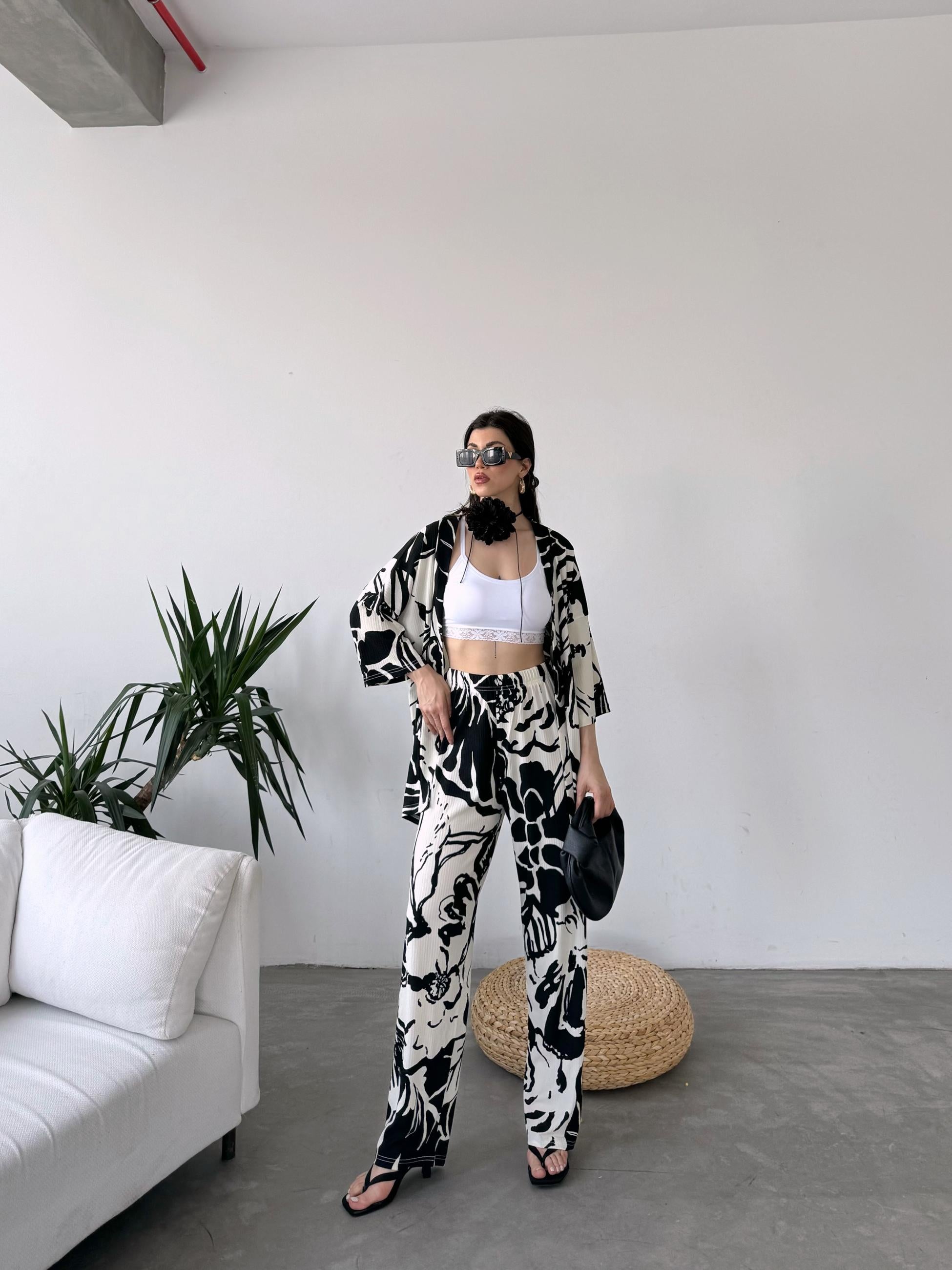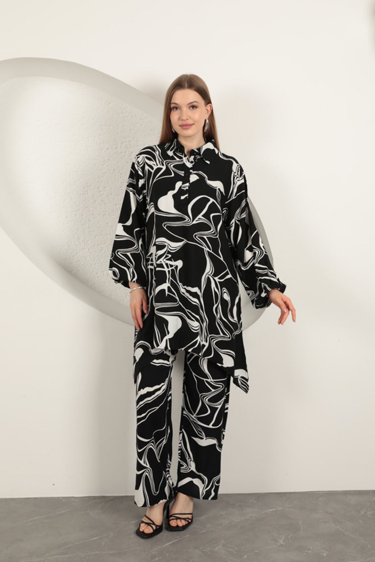 Viskon Kumaş Desenli Kadın Takım-Saks -