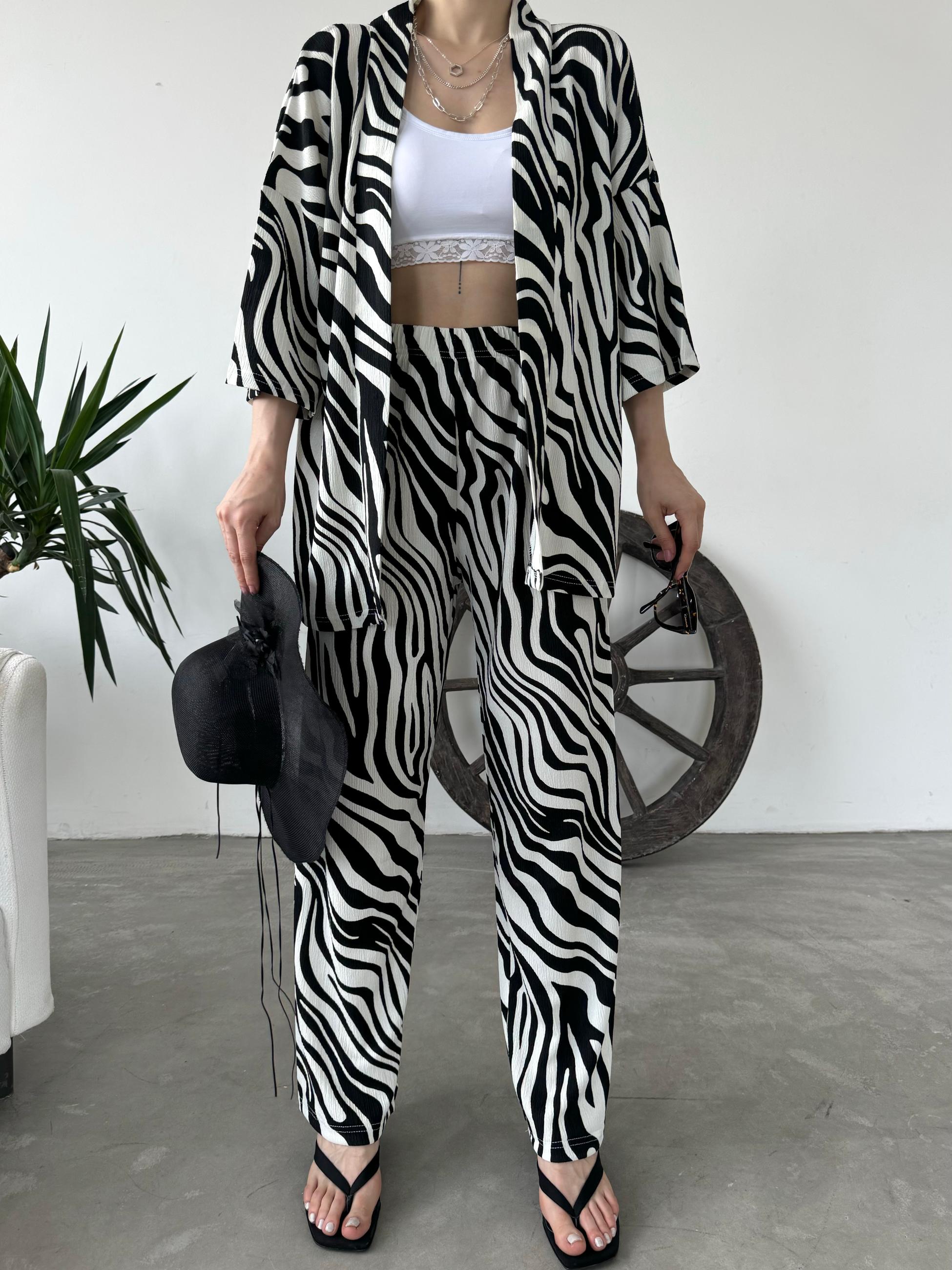 Viskon Kumaş Çizgili Kadın Takım-Haki -