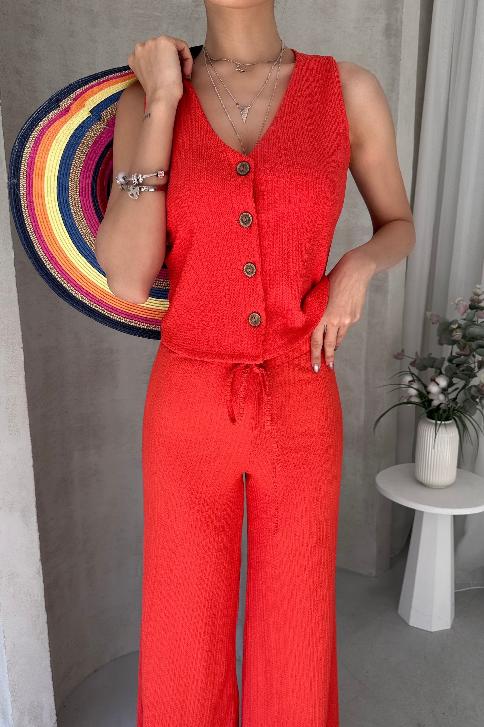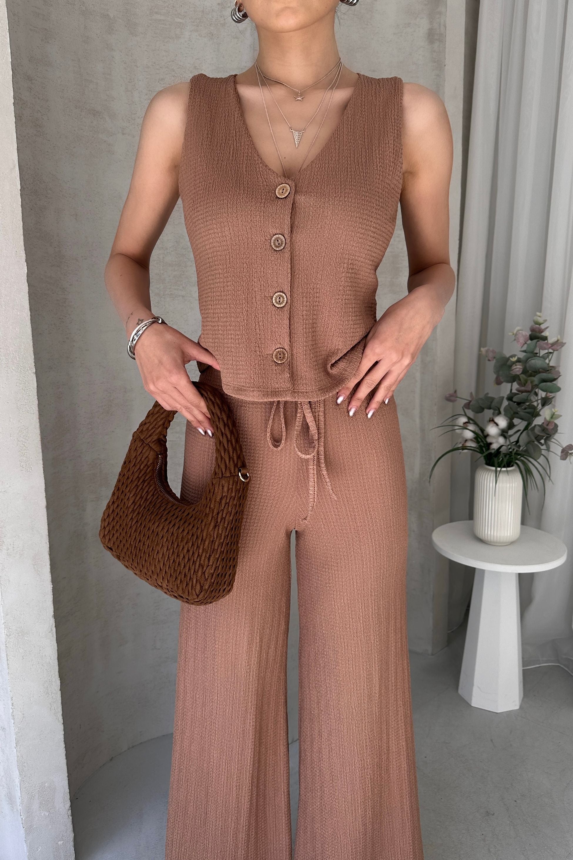 Yüksek Bel Rahat Pantolonlu Kolsuz Yelekli Takım Yüksek Bel Rahat Pantolonlu Kolsuz Yelekli Takım