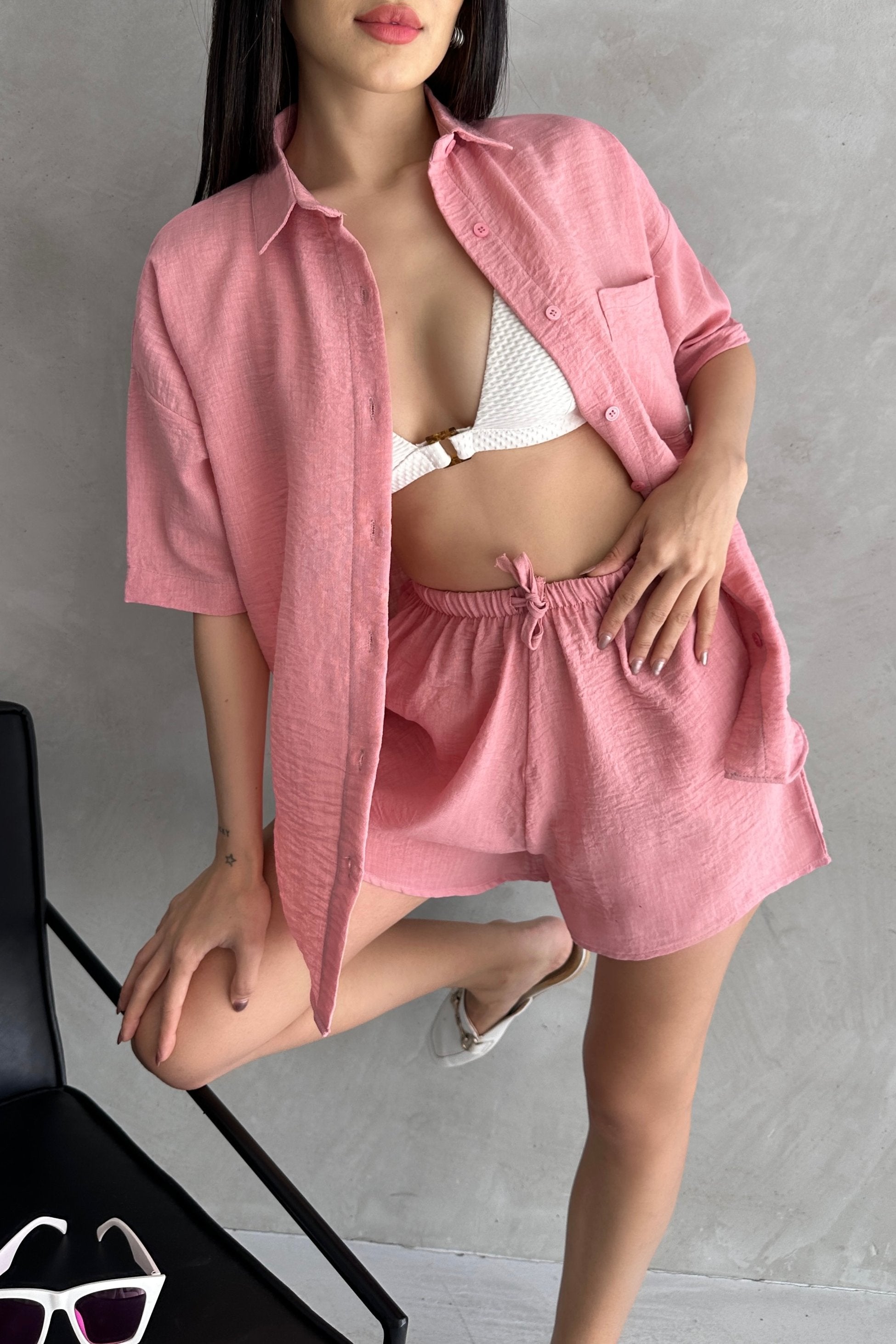 814.55TLAerobin Keten Kısa Kol Gömlek ve Şort Alt Üst Takım