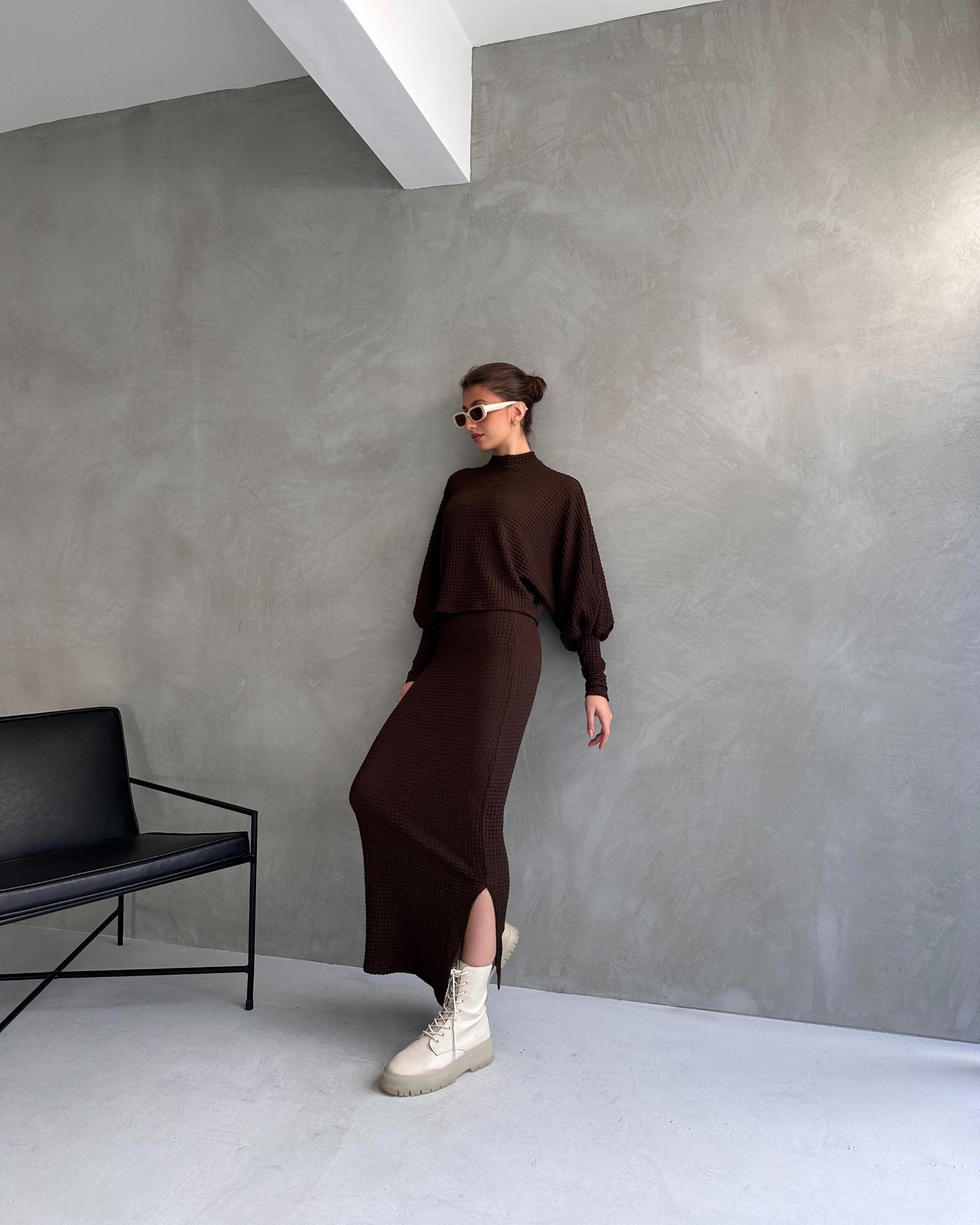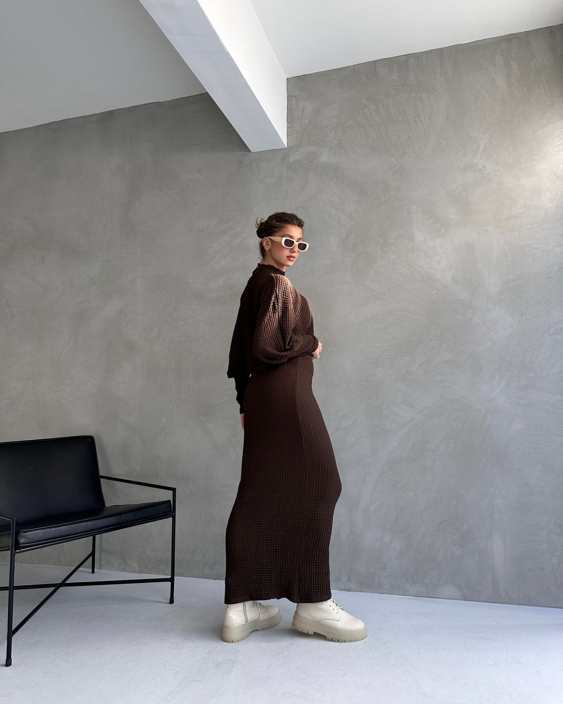 768.18TLFırfır Detaylı Crop Bluz Ve Etek Triko İkili Takım