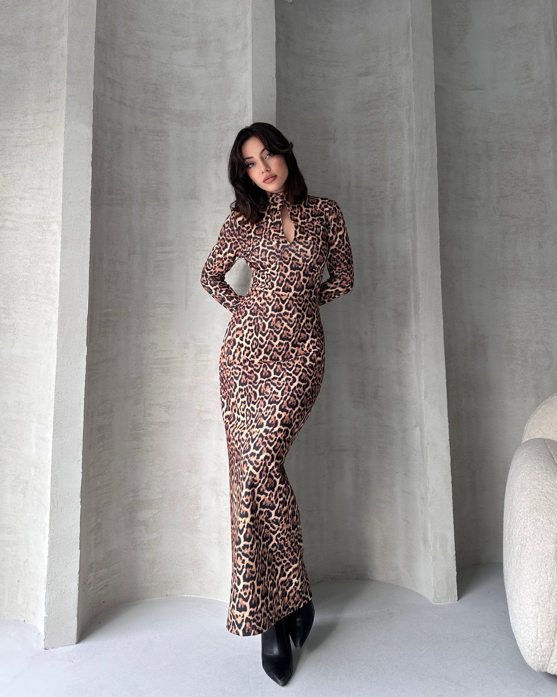 590.45TLTek Omuz Derin Yırtmaç Detaylı Buzzy Elbise