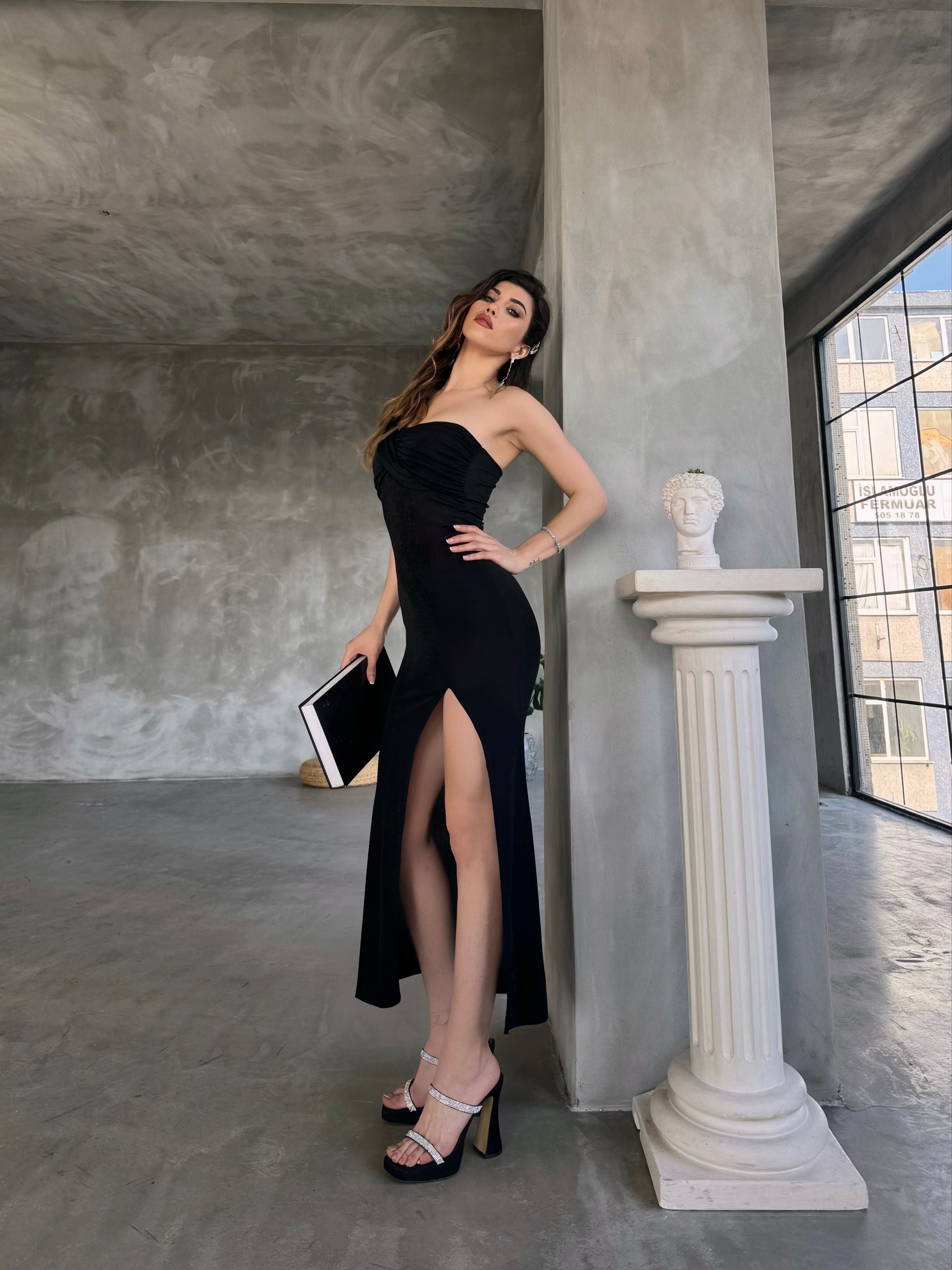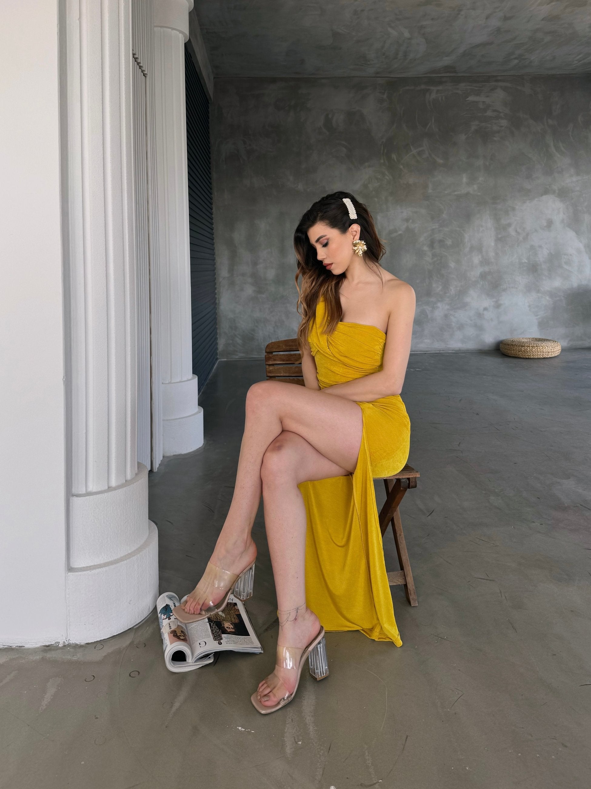Tek Omuz Derin Yırtmaç Detaylı Buzzy Elbise Tek Omuz Derin Yırtmaç Detaylı Buzzy Elbise