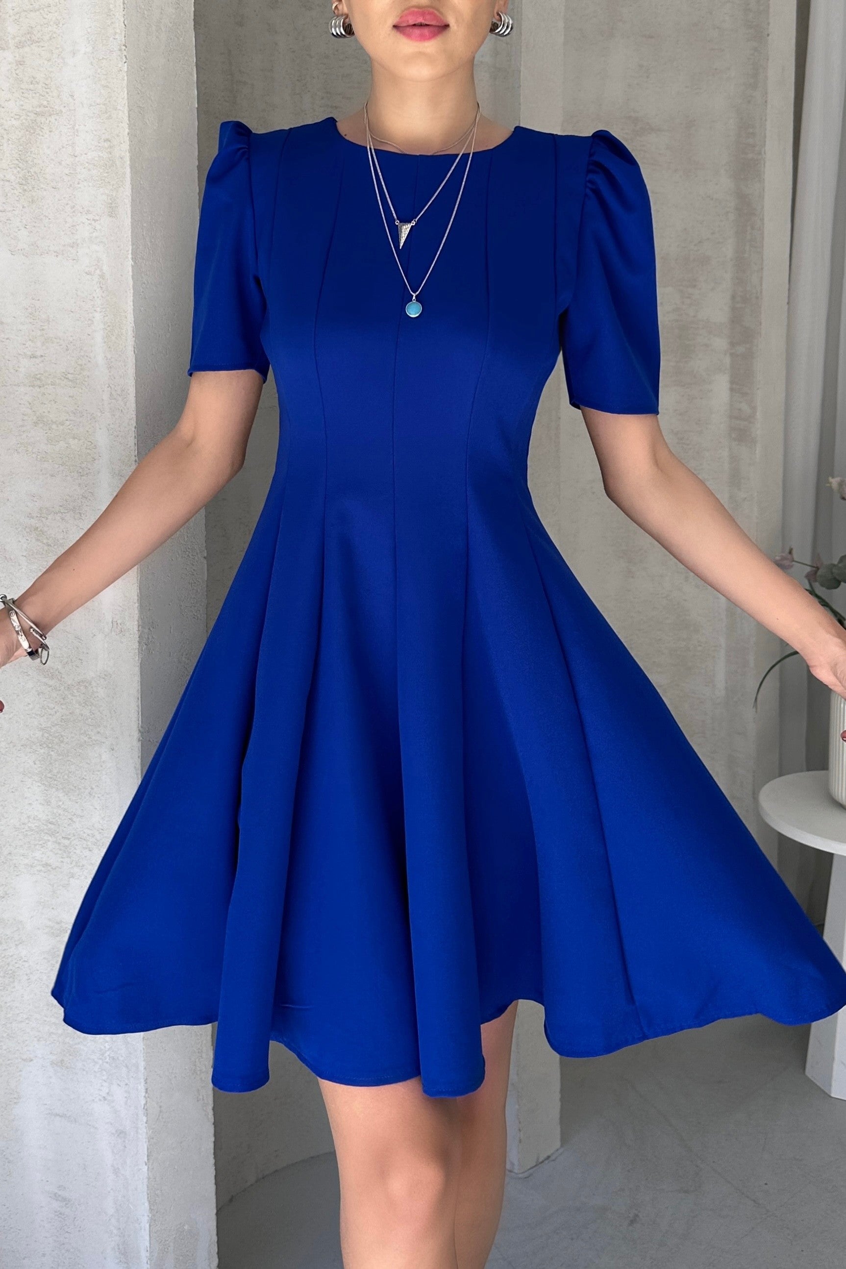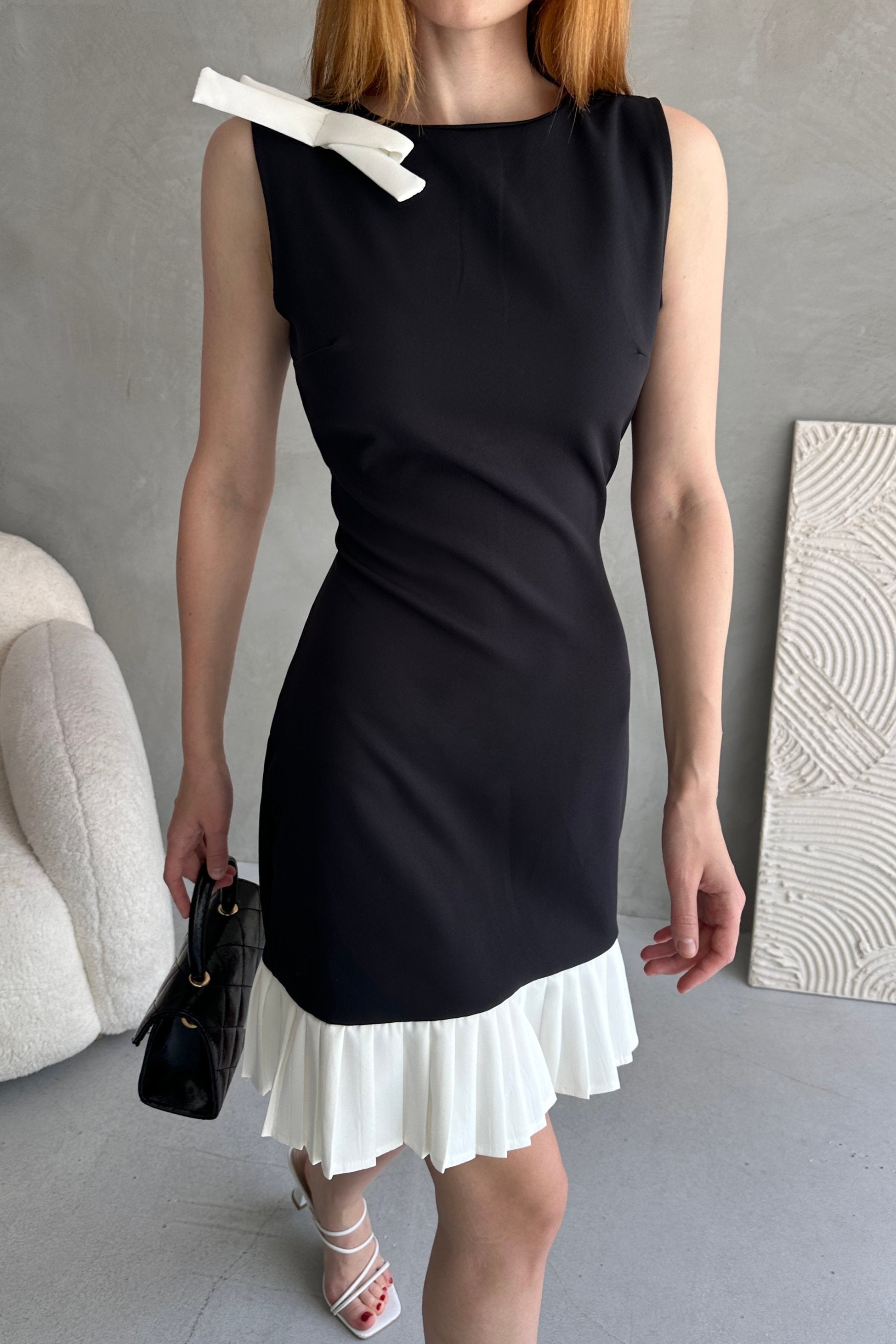 Fiyonk Detaylı Pileli Mini Elbise -