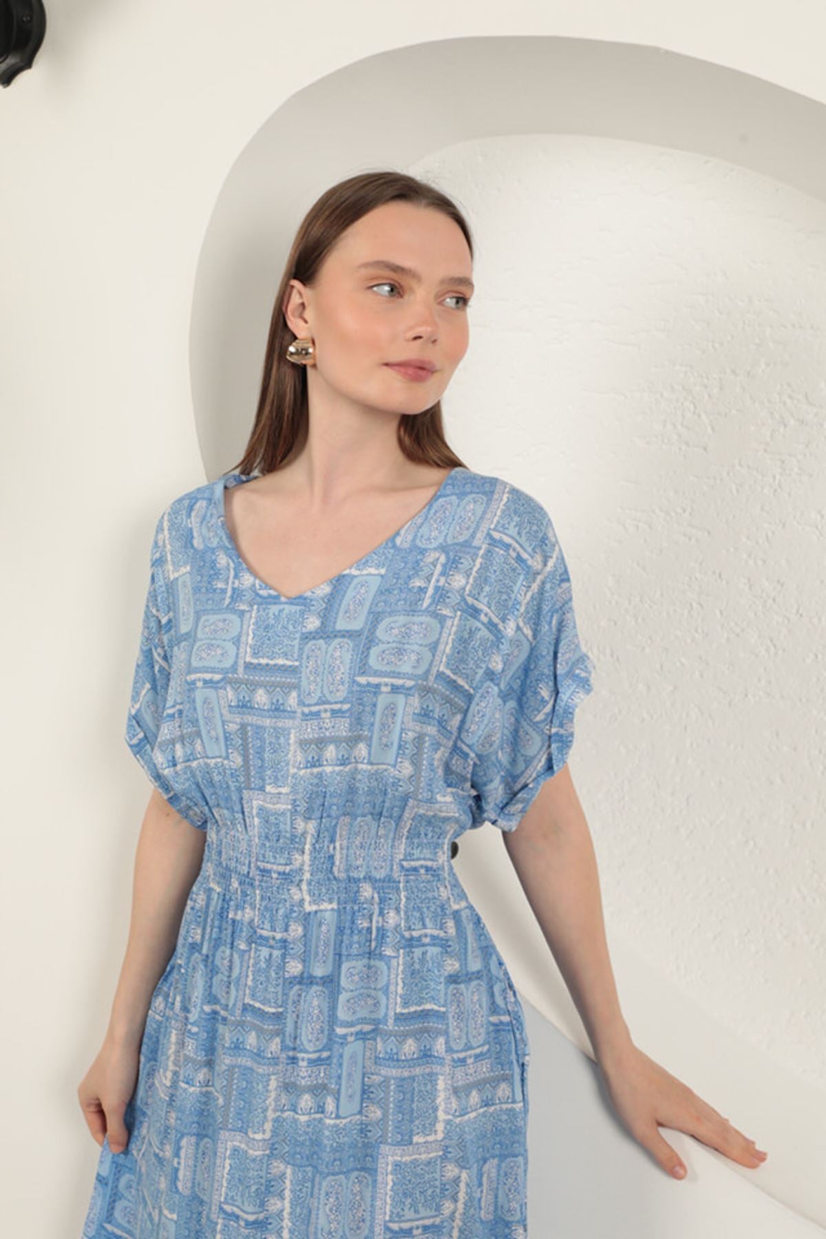 Viskon Kumaş Gipeli Elbise-Mavi -